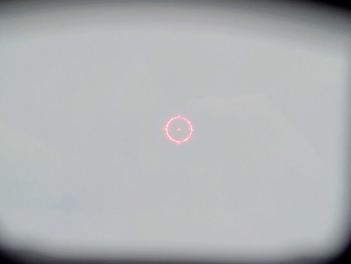 しかし、本製品のようなレーザー投影式のリアルホロサイトは、レンズの端にレティクルが見えていても、その点はしっかりと標的を指し示しています(いわゆるパララックスフリーに近い特性)。