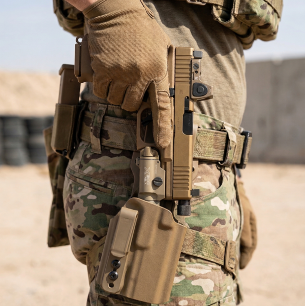 特徴的なコヨーテカラーの外装や、指の形状を選ばないフィンガーグルーブレスのGen5フレームなど、徹底的に「実戦用」として磨き上げられました。