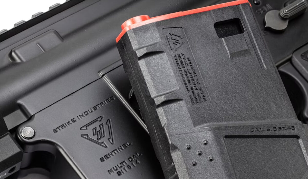 本製品には、STRIKE INDUSTRIES製の250発スプリング式ミッドキャップマガジンが付属しています。