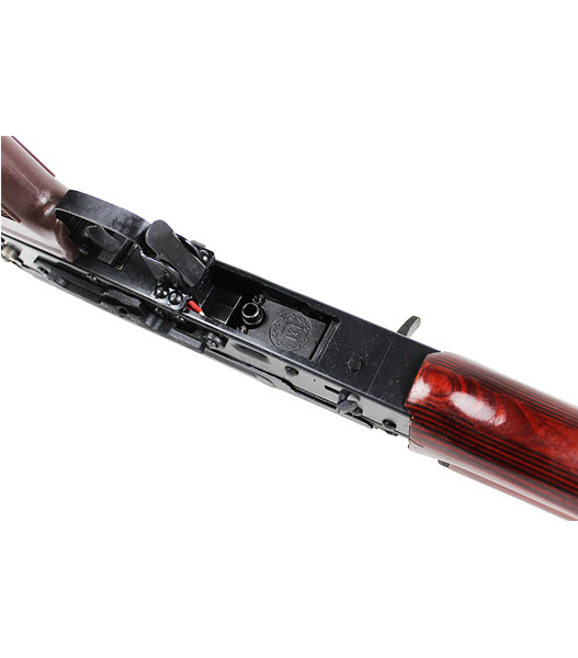 高品質エアガンメーカーE&LのAKM DX Ver.です。 【基本仕様】 重量:3580g材質:スチール/合板/強化プラスチック カラー:BK/ウッド全長:905mmインナーバレル長/内径:455mm/6.03mm HOP調整:可 発射機構:セミ/フル