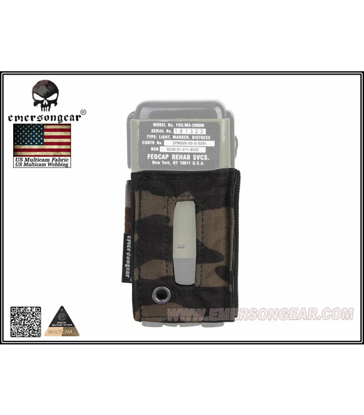 MS2000ディストレスマーカー専用ポーチです。 スイッチ部にはスリットが設けられ収納時でも操作が可能です。 ベルクロによる装着のためヘルメットへの取り付けに最適。 材質は引き裂き・摩耗に強い耐久性に優れた500Dナイロンを使用しています。