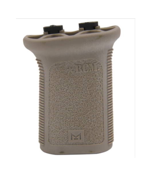 少し傾いた角度とフラットな側面が特徴的な、人間工学に基づいて設計されたバーティカルグリップ。トリガー側に傾けて取り付けることで、完全に垂直なフォアグリップよりもライフルを楽な姿勢で構えることができ、手首や腕への負担を軽減。