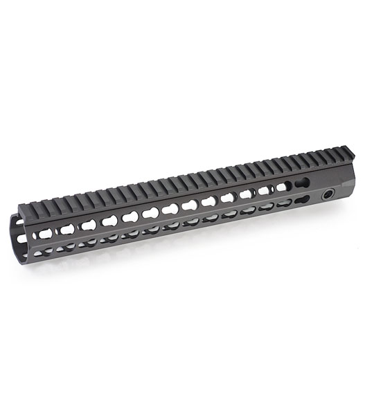 Knight's Armament正式ライセンスによるURX4タイプハンドガードです。 フリーフロートのハンドガード内にはバレルナットやガスチューブが組み込まれ、独自のデザインをリアルに再現しています。 トップは20mmレール、その他の5面にはKeyModシステムが配置され拡張性が確保されています。 サイドにはQDスリングポイントがあり、スリングを取り付けて取り回しの向上や安定した射撃をサポートします。 材質はアルマイト加工が施されたアルミで構成され軽量かつ堅牢なつくり。 カラーは落ち着いたマットブラックフィニッシュでどのようなM4/ARにもフィットします。 【基本仕様】Madbull(Knight's Armament正式ライセンス)材質:アルミ(アルマイト加工)重量:330mm調整用シム×6付属スタンダードM4、次世代M4シリーズ対応