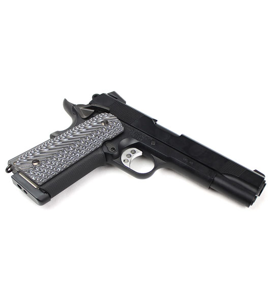 東京マルイのM1911シリーズに対応したカスタムグリップです。 実銃のグリップにおいて採用されている軽量で剛性のあるガラス繊維のG10を素材としています。 編み込みや波状のテクスチャが特徴的なデザインとなっており、リッジは手に良くフィットする厚みで深めのサムリリーフと相まって 優れたグリップ感が実現します。