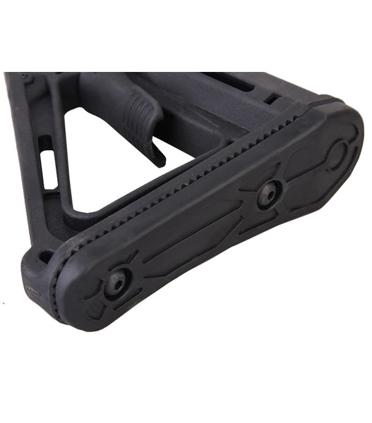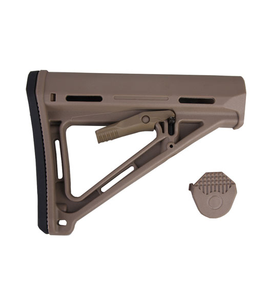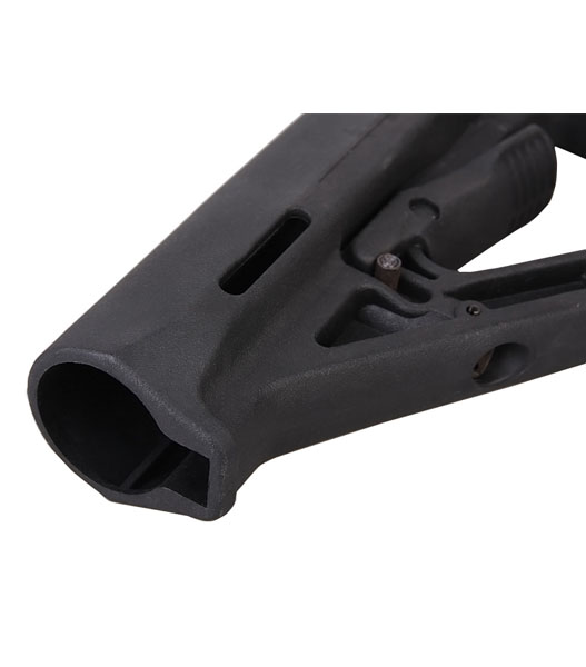 AR15/M4ストックチューブに対応したMAGPUL MOEタイプストックです。 素早い動作を可能とする軽量・最新鋭のAフレームデザインで、他に干渉しにくいスナグフリー設計とリリースラッチの誤作動を防止する機能が特徴となっています。 バットパッドには滑り止め効果の高い厚手のラバーが採用され、ボディーアーマーやコンバットギア着用時でも確実な肩付けが可能です。【特徴】・快適な頬付けを可能とする傾斜の掛かったスリムなチークウェルド・スナグフリー/誤作動防止に効果のあるシールドリリースラッチ・AR15/M4プラットフォーム以外の機種でも使用できるよう考慮されたチークライザー用サイドマウントスロット