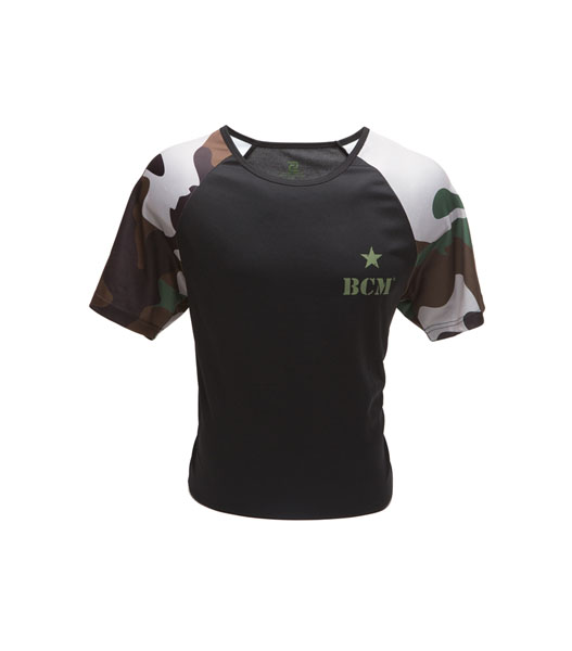 BCM Moisture Wicking Raglan Camo Sleeve T- Black L
