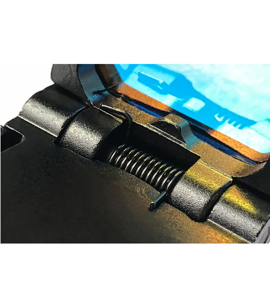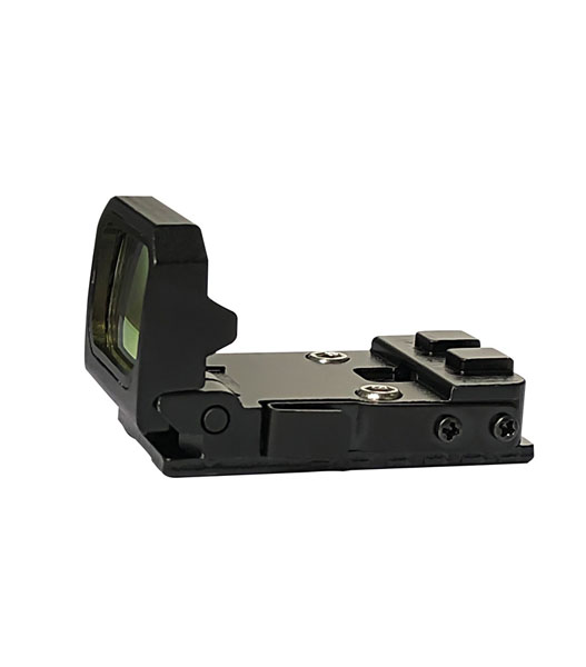ユニークなフォールディングフリップレンズを持つNcSTAR VISMタイプのドットサイトです。 レンズを折り畳む機能でドットサイトがフラットになり、ホルスター収納時でも干渉や、シルエットが浮き出るプリンティングが生じ難く非常にコンパクトにすることが可能です。バッテリーにはCR2032×1本(別売)を使用。 レッドドットは左側のスイッチを押し込みレンズを展開すると自動で点灯、折り畳むと消灯します。 接眼側にはドットの視認性が上がるよう青みをつけ、対物側には美しいルビーコート表面処理が施され、 さらに広い視野とアイリリーフにより、素早い照準と正確な射撃が可能となっています。 手前/奥にはそれぞれバックアップサイトが設けられているので、万一ドットが点灯しなくなった場合でも安心。 ハイプロファイルのため、カスタムスライドにマウントしサプレッサー装着にもBUISとして機能します。マウントにはGlock MOS/RMRカットスライド/20mmレール用マウントの3種類が付属。 Glockピストルのみならず、ライフルへ装着することもできるためあらゆる機種へ応用できるオールマイティーなドットサイトとなっています。