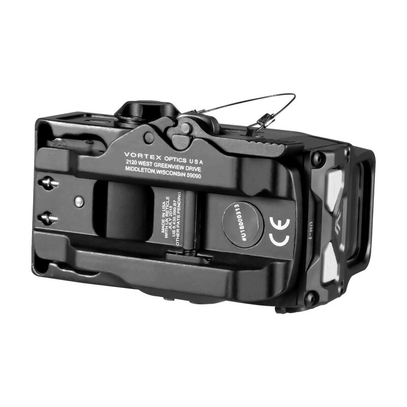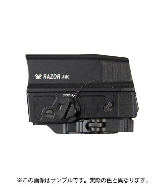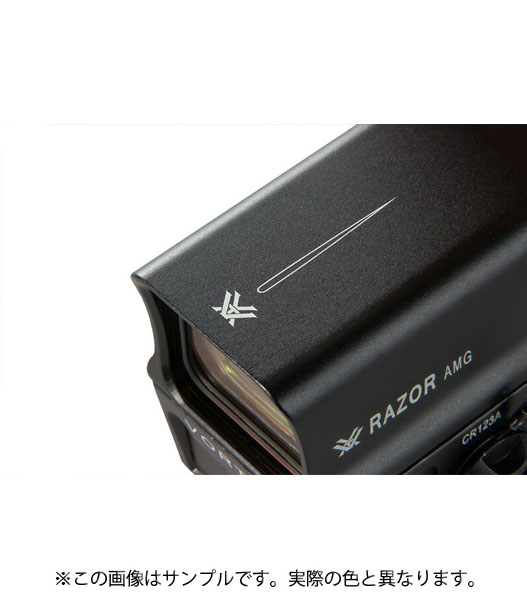 ヴォルテクスオプティクス最新型ホロサイトRazer AMG UH-1タイプのリフレックスドットサイトです。 歪曲が小さく明瞭な視認性を実現するレンズと、視野に干渉するシュラウドを最小限にすることで素早く直感的な照準が実現します。UH-1は効率的なターゲティングを可能とするEBR-CQBと呼ばれる特徴的なレッドレティクルを採用。 センターサークル・センタードットを中心に3/9/12時方向のライン、トライアングルで構成されています。 10ヤード以下の近距離射撃においては下部のトライアングル、25〜400ヤードの中距離射撃においてはセンタードットによる照準を行うことで正確な射撃が可能となります。プラスボタン(+)またはマイナスボタン(-)いずれかを押し込むと点灯。 輝度は10段階に渡る調整が可能で、低照度環境や日中問わず幅広いシチュエーションで活躍します。ハウジングには軽量かつ堅牢なアルミを採用し、さらにアルマイト処理を施すことで、高い衝撃耐性・耐久性が実現。 対物レンズには美しいルビーコート加工、接眼レンズにはレッドレティクルの視認性が向上するよう青みを持たせており、引っ掻き傷を防止するコーティングがされています。パワーソースはサイドに収納部が配置されたCR123A×1(別売)を使用。 さらに、USBポートが設けられているため、付属のMicro USBケーブルで充電することで、充電式のバッテリーによる稼働も選択することが可能です。 2時間キー操作が無い場合の自動電源オフ機能も搭載されバッテリーの節約も期待できます。