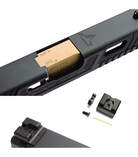 ・スライド(アルミ削り出し)・バレル(アルミ削り出し)・フロント/リアサイトセット(アルミ削り出し)・フロントサイト用ファイバーチューブ(グリーン)・ブリーチ固定用ネジ
