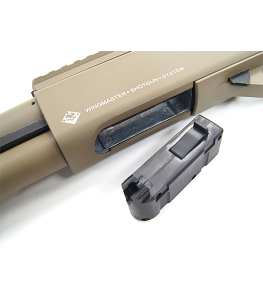 ハンドガード(RVGフォアグリップ)を後退、前進させることでスプリングをコッキングするポンプアクション方式で軽快な手動連射が可能!!