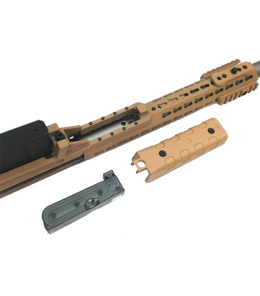 このMk13 MOD7を、海外トイガンメーカー『Archwick』がボルトアクション式エアコッキングライフルとしてモデルアップ!内部パーツやマガジンはボルトアクションエアガンのベストセラーVSR-10シリーズと互換性を持たせており、カスタマイズへの対応にも配慮した設計となっています。