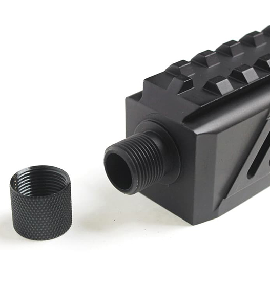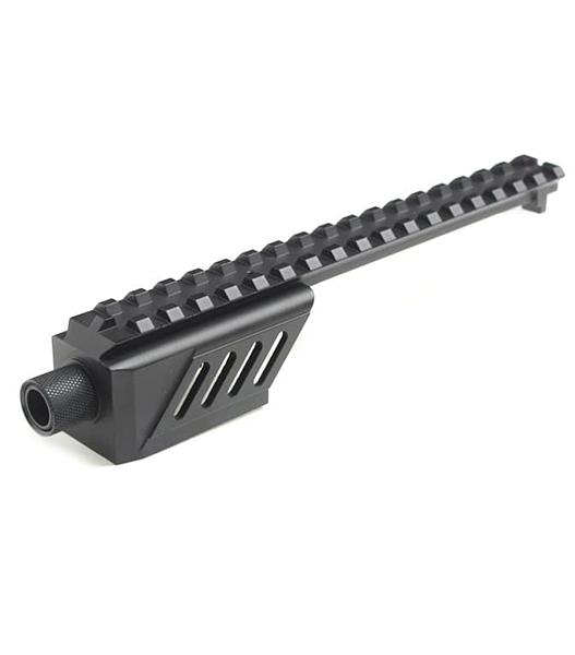 取付けることで上面にマウントレイルと銃口部にサイレンサー用14mm逆ネジが装備できます。