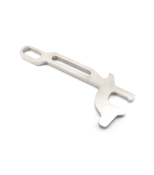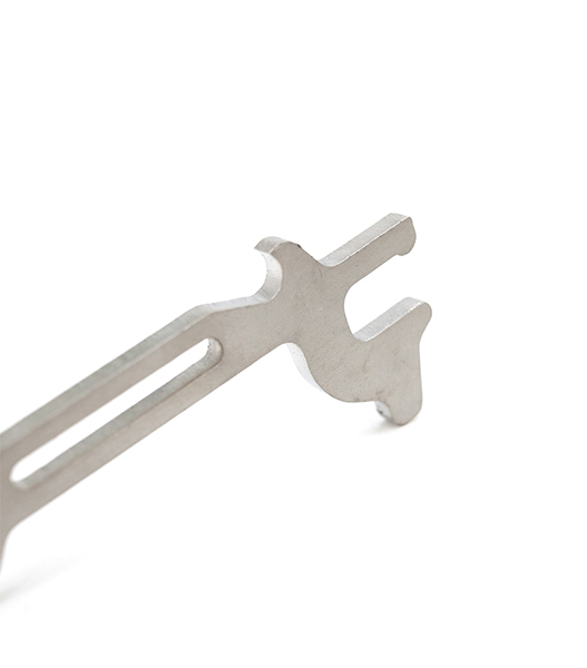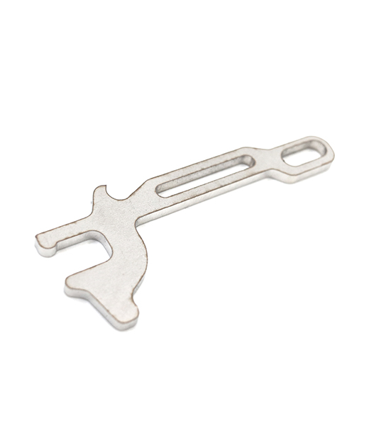 ステンレス材をレーザーカットで精度高く成型し、プレート自体の小型化やライトニングホールで軽量化。ボルトキャリアに掛かる爪の位置は純正と同位置となります。機能面はそのままに、耐久性アップと軽量化を両立したパーツです。