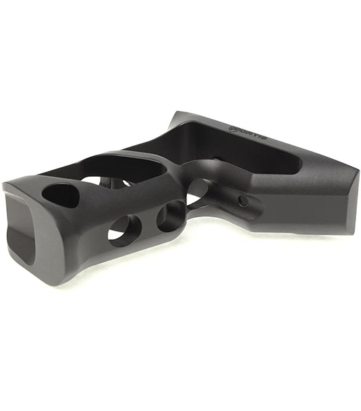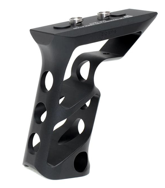 洗練されたエルゴノミクス形状により、従来のバーティカルフォアグリップとアングルフォアグリップの中間的な操作感を実現。