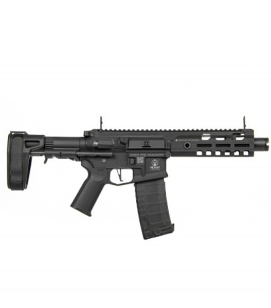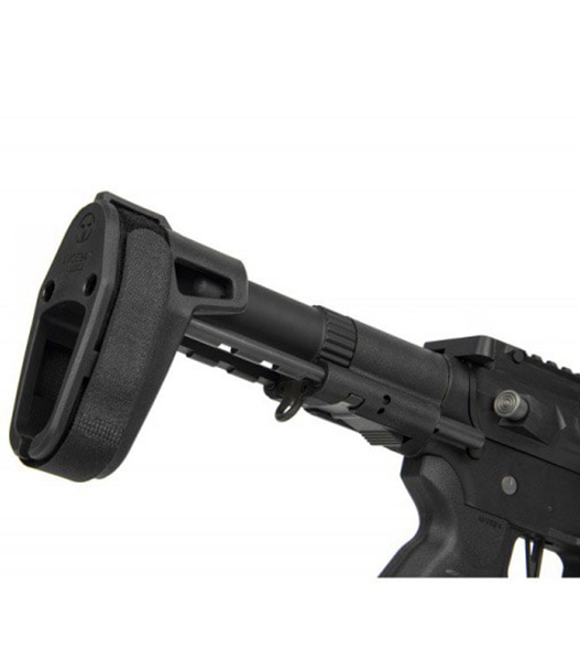 片腕のみで本体を固定する使用方法も可能なスタビライジングブレイス機能付きストックを装備しています。