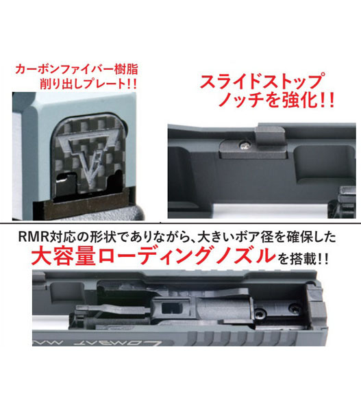 BomberAir東京マルイ GLOCK17 Gen.3 /22/34 GBB 対応スライドです。ホップアップチャンバーセット&リコイルスプリングガイドを組み込むだけで、カスタマイズが完了します。
