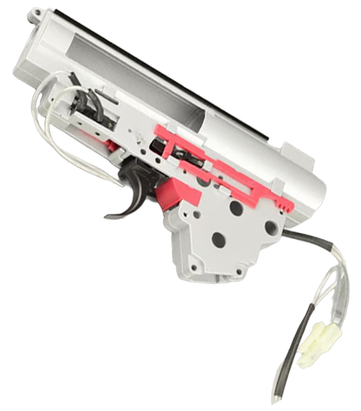 ZC製 Ver3 マイクロスイッチ QD式強化メカボックス 8ミリ軸受け仕様。メカボックスを開ける事なく後方からスプリングを交換できるQD(クイックダウン)式ですのでメカボックスの組み立て分解が非常に楽になります。