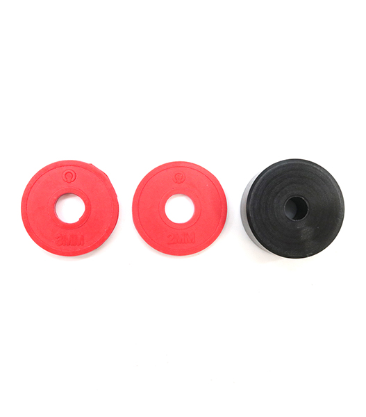 メインのスペーサーは樹脂製ですが、更にかさ増ししつつクッションの役割も果たすラバークッションが2mm厚と3mm厚の2種類付属します。