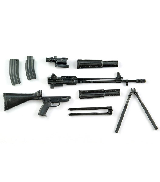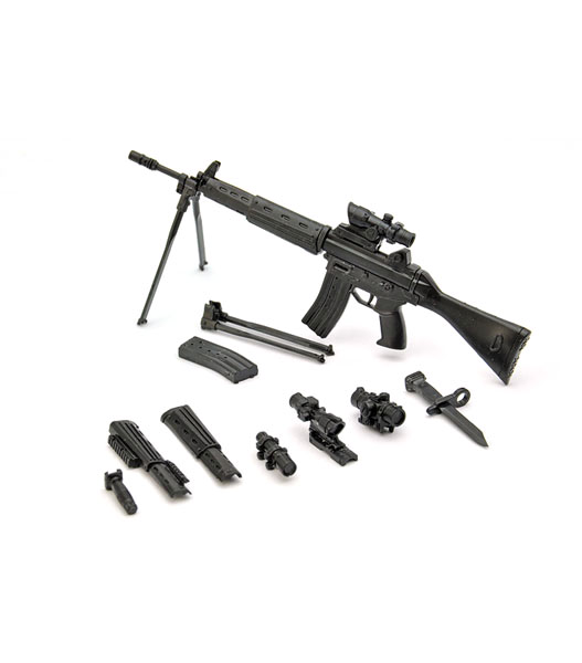 トミーテックゲーム「ドールズフロントライン」と「リトルアーモリー」のコラボモデルです。ランナーキットを組み立てると銃本体の他、ディスプレイ用マガジンとTA02タイプのスコープ等が完成します。89式特製イラストカード付属。仕様 1/12スケールランナーキット(無彩色)
