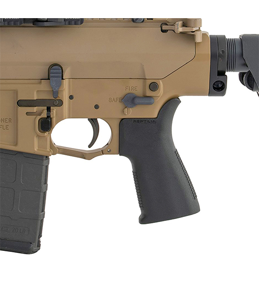 REPTILIAコンパクトサイズのショートバレルライフルやPDWに合わせた特別なグリップです・コンパクトカービンに最適なショートサイズと垂直なグリップ角度を装備・滑り止めテクスチャーとビーバーテールで快適なグリップを実現・グリップをより高い位置に配置することでコントロール性を向上