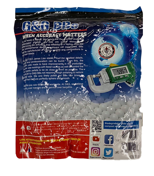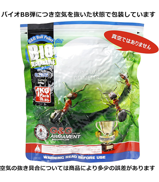 台湾G&G社製の精密バイオBB弾です。 かなりお得な 1キログラムパッケージ! ちゃんと土にかえて環境にやさしいバイオBBです。