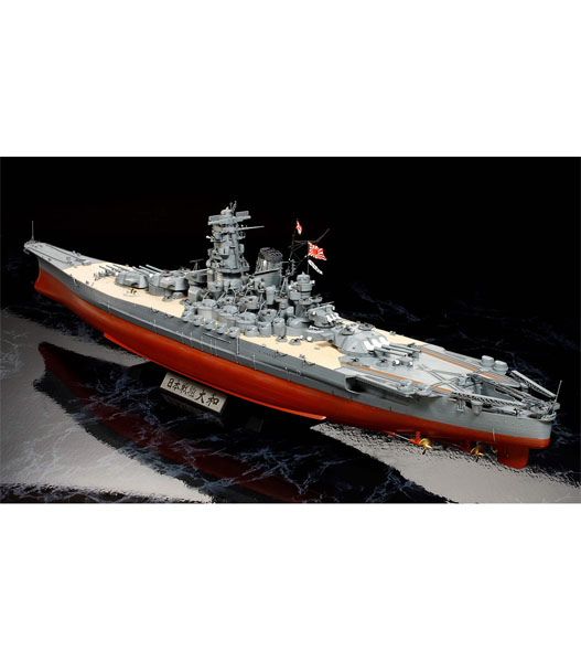 タミヤ日本海軍が第二次世界大戦当時に世界最大、最強を誇った戦艦大和のプラスチックモデル組立てキットです。最新の考証を充分に検証し、1/350スケール、全長752mmの巨大な船体をパーツ構成、ディティールまで徹底したこだわりをもってモデル化しました。各部の形状はもちろん、これまで模型では再現されたことのない砲塔基部の構造も再現するなど、艦船模型の新たな可能性に挑みました。細部の仕様は対空兵装を大幅に強化して沖縄戦に出撃した最終時の姿を忠実に再現。フルハル仕様、ウォーターライン仕様のいずれかを選んで組立可。電探やハシゴ、クレーンなどの精密感をアップさせる大判のエッチングパーツを2枚セット。作る楽しさ、作り応え、再現度、精密感、艦船模型の頂点を極めるフラッグシップモデルです。★完成時の全長752mm、全幅110mm