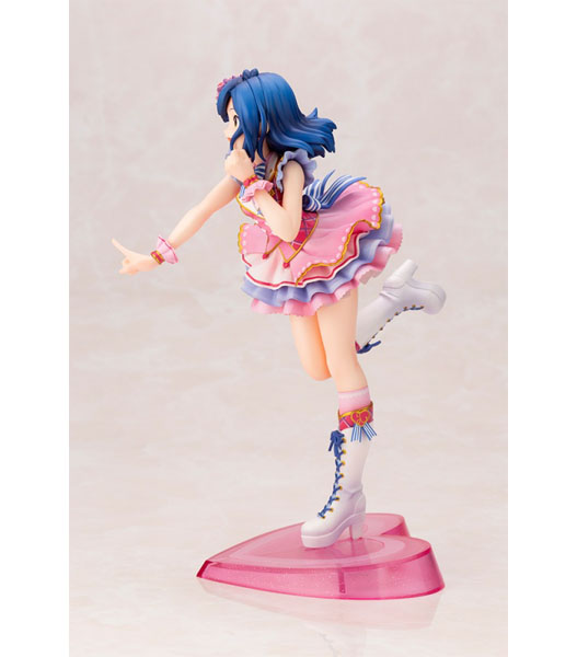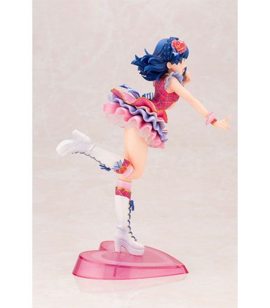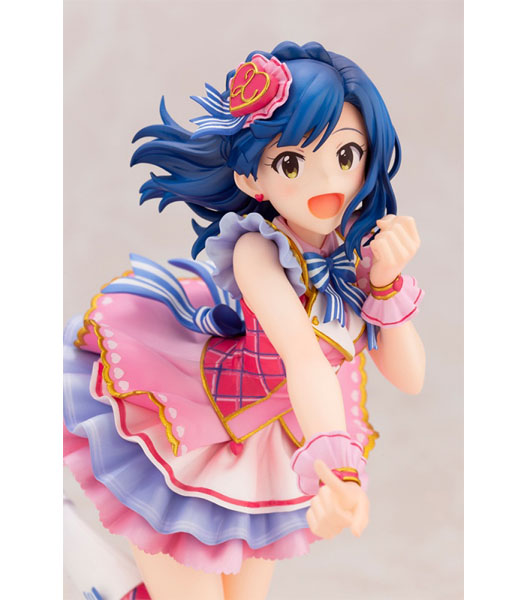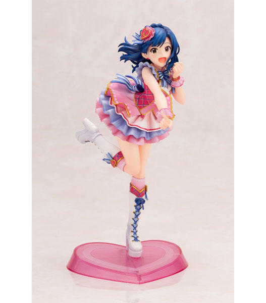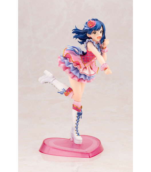 コトブキヤ(製品説明)私たち、まだまだ発展途上ですけど、届けたいハートは……こーんなに、大きいんですっ!『アイドルマスター ミリオンライブ!』より、ちょっぴり夢見がちな文学少女、七尾百合子がフィギュアになって登場!『アイドルマスター ミリオンライブ!シアターデイズ』内のイベント「プラチナスターシアター〜成長Chu→LOVER!!〜」で登場した衣装「ラブ・フォー・ユー」を身に纏い、物語の主人公のように元気いっぱいにステージで踊る一瞬を再現しました。