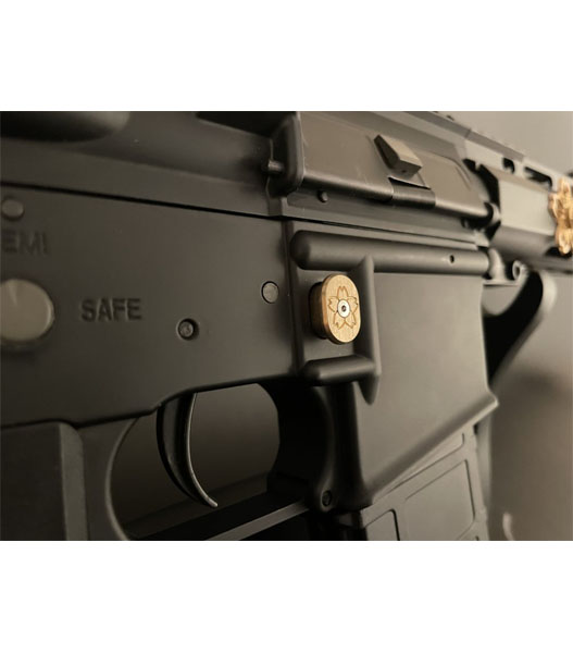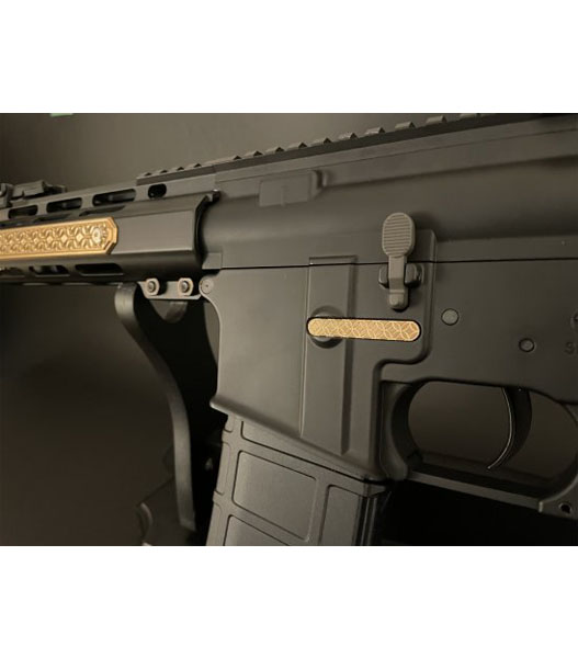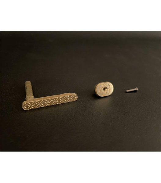 職人が丁寧に模様を施したマガジンキャッチ。