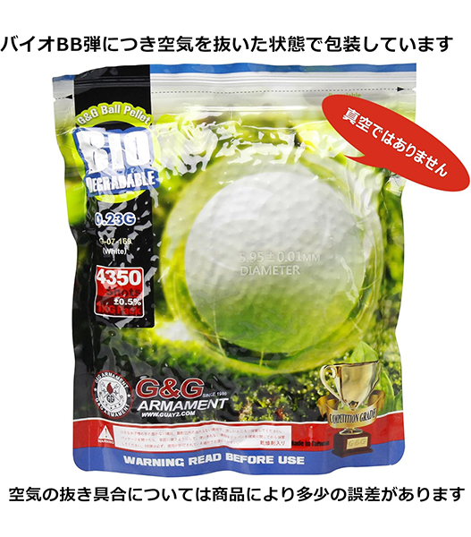 G&G湾G&G社製の精密バイオBB弾です。かなりお得な 1キログラムパッケージ! ちゃんと土にかえて環境にやさしいバイオBBです。