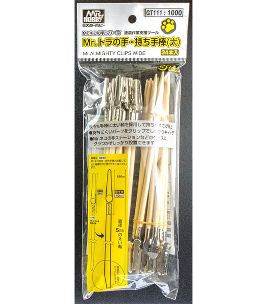 GSIクレオス塗装作業アシストツールのMr.ネコの手シリーズに特大ラインの「トラの手」が登場!第一弾は塗装作業の必需品、持ち手棒です。柄には「ネコの手・持ち手棒」よりも太い棒を採用したことで、持ちやすさとベースへの安定が向上しました。