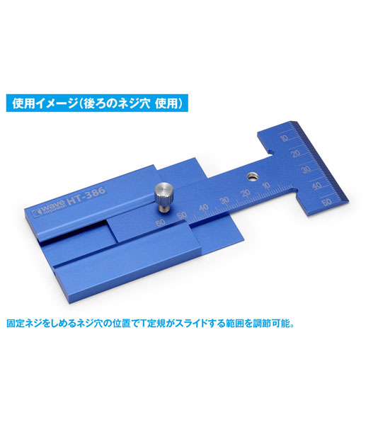 固定ネジをしめるネジ穴の位置でT定規がスライドする範囲を調節可能。
