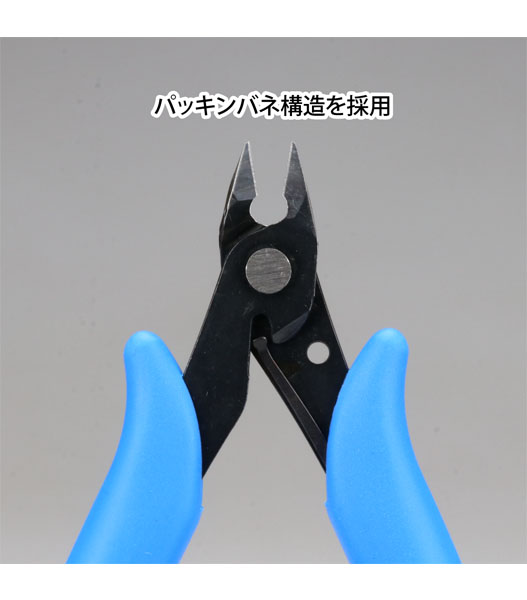 ゴッドハンドニッパーを使い慣れていない方から、使いこなしている方まで、どなたにでも使いやすい高耐久な両刃ニッパーです。丸みのないフラットな刃先なので、切断面を平らにカットすることができます。また、不意の操作でも壊れにくい強度を保っており、刃折れの心配も少なく安心してご使用いただけます。直径3mm以下のプラスチックに対応しているため、プラモデル制作に最適です。特許技術「パッキンバネ?」を採用しており、ある一定の位置まで握りを開くとストッパーが解除され、全開まで開くことも可能です。
