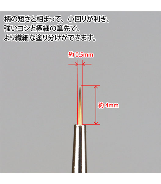 ・サイズ:筆先から柄の端まで約96mm、穂先幅約0.5mm、穂先長さ約4mm