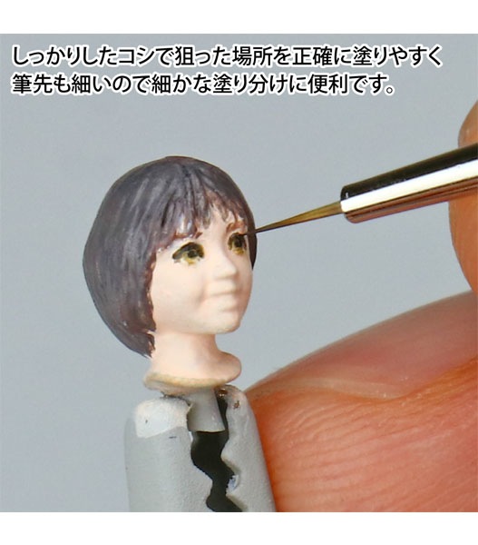 ・模型の筆塗りがしやすいコシに調整してあるので、一般的な化学繊維筆に比べて筆先がしなやかです