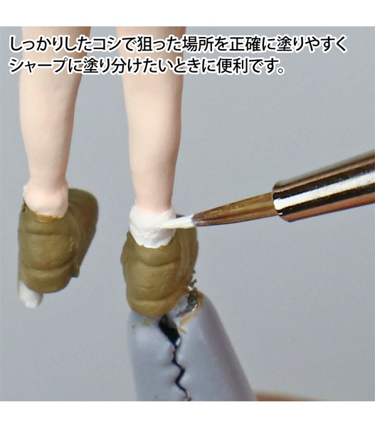 ・模型の筆塗りがしやすいコシに調整してあるので、一般的な化学繊維筆に比べて筆先がしなやかです