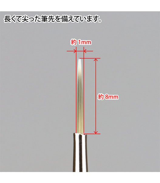 ・サイズ:筆先から柄の端まで約100mm、穂先幅約1mm、穂先長さ約8mm