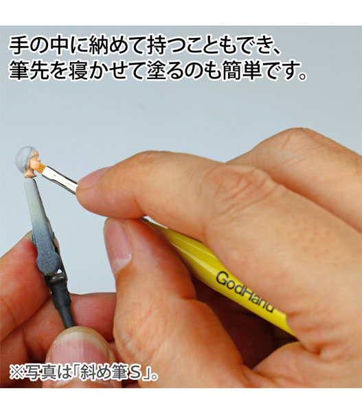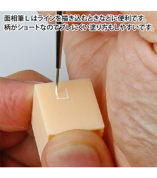 ・模型の筆塗りがしやすいコシに調整してあるので、一般的な化学繊維筆に比べて筆先がしなやかです