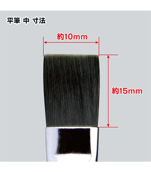 ・模型の筆塗りがしやすいコシに調整してあるので、一般的な化学繊維筆に比べて筆先がしなやかです