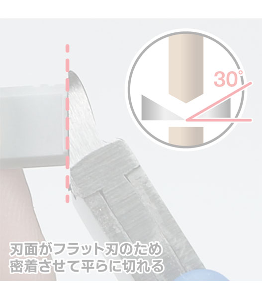 ・フラット刃(刃の表面が平らな)構造を採用。パーツの面に刃を密着させて切ることで、切断跡が平らになります