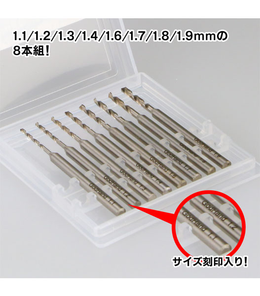 ・(C)軸径:3.0mm/ドリル径:1.1mm、1.2mm、1.3mm、1.4mm、1.6mm、1.7mm、1.8mm、1.9mm(8本組)