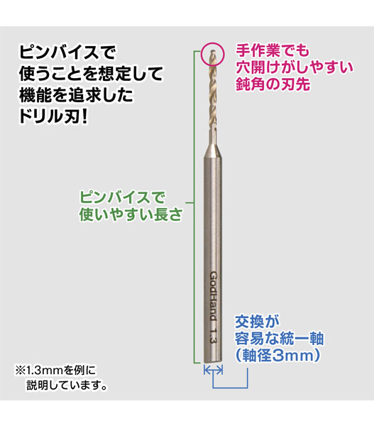 ゴッドハンドありそうでなかった模型専用設計ドリルビットです。ドリル先端を鈍角に専用設計し、安定した切削が可能になりました。
