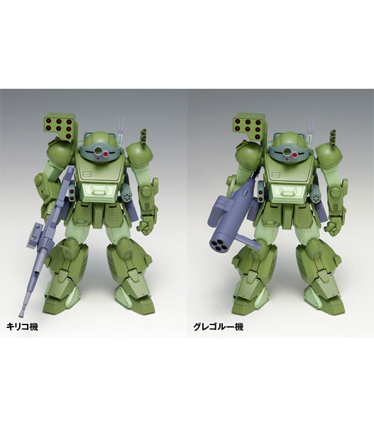 また、武器パーツは、「ヘヴィマシンガン」、「ハンディロケットランチャー」、「ヘヴィマシンガン ショートバレルタイプ」、「ソリッドシューター」が付属しますので、好みに応じて「ザ・ラストレッドショルダー」の主人公たち、「キリコ」、「グレゴルー」、「ムーザ」、「バイマン」、いずれかの機体に仕上げることができます。