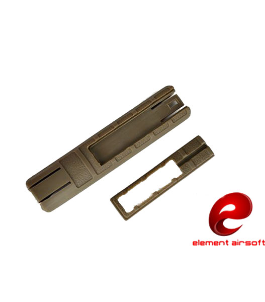 20mmレール対応のレールカバーです。嵌め込みのプレートを外して、 タクティカルライトのリモートスイッチを入れるスペースが生まれます。カラー:DE