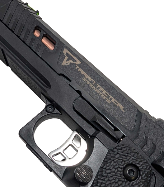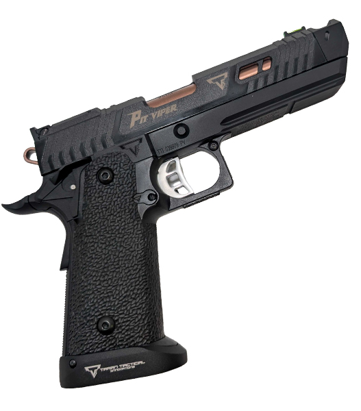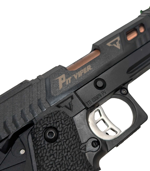 BATONBATON airsoft「BT-PIT VIPER CO2 GBB」をベースに、スライド/フレーム/マグウェル等へ刻印・レーザーマーキングを追加施工したスペシャル仕様が「フル刻印Ver」です。