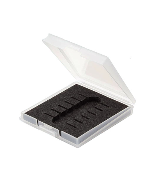 GT65 Mr.ラインチゼル、GT75 Mr.精密彫刻刀の替刃専用収納ケースです。 替刃を6本まで収納できます。替刃のサイズを記入できる貼り付けシールが付属しています。