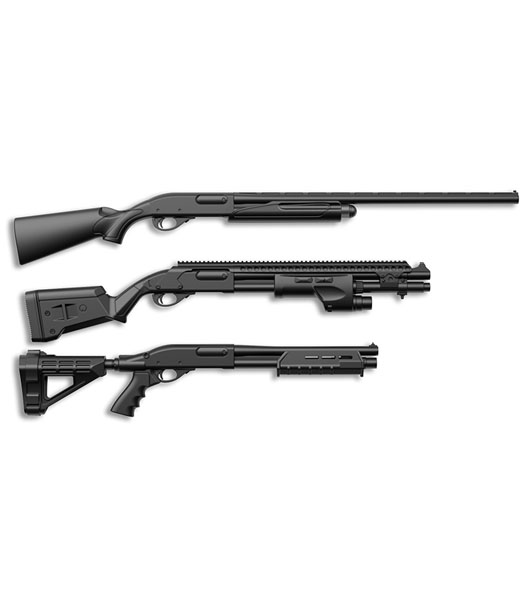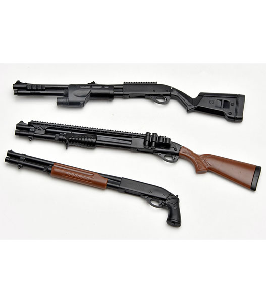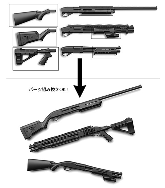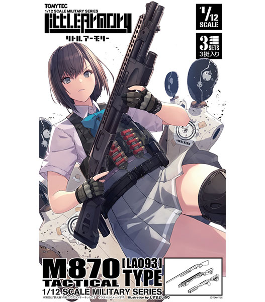 トミーテックM870のモダンスタイルをピックアップ。競技・狩猟モデルの“エクスプレスSYN”。戦闘用にカスタマイズされた“タクティカルカスタム”。CQB用に特化した“TAC-14”の3挺セットで製品化。リトルアーモリーのM870シリーズは、ストック、レシーバー&バレル、フォアエンドの共通設計化でパーツのミキシングが可能。ポンプアクションもOK。・仕様 :1/12スケール