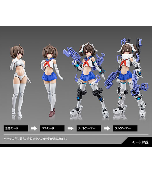 ・アーマーを身に着けた「武装モード」と、アーマーを脱いだ「素体モード」をパーツ差し替えで再現できます。