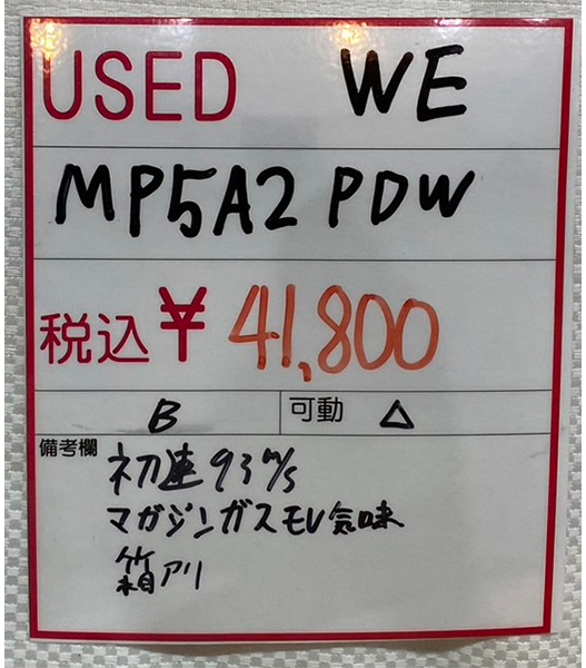 中古 ミリタリー USED WE 本体 MP5A2 PDW GBB NPAS導入済み ガス漏れ有 本体Bランク
