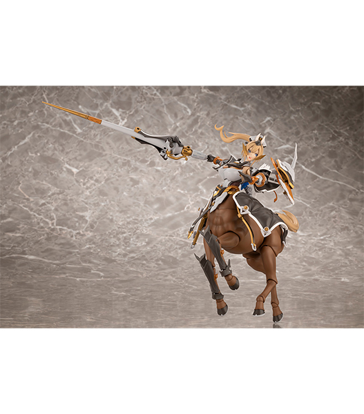 人型腰部分、下半身胴体2箇所の合計3箇所がボールジョイント接続になっているため、好みのポージングに合わせてフレキシブルに可動。武器を構えた姿のほか、寝そべっている姿や座りポーズの再現など、馬らしいポージングも可能