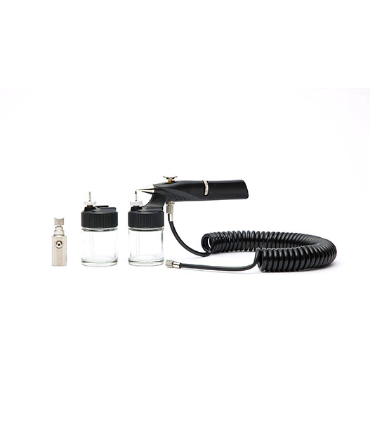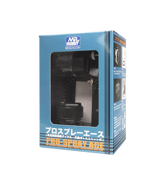 GSIクレオスプロスプレーエースは自分で調色した塗料を、スプレーのように塗装できる簡易型吸い上げ式エアブラシです。本体のジョグダイヤルで吹き付け風量を調整可能。付属の交換ボトルユニットを使うことで、ワンタッチで色の交換ができます。